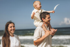 Tai galimybė pasimėgauti bendru laiku, lengvumu, žaismingumu ir nuotaikingu procesu. Smagios užduotys ar nedideli žaidimai padeda atsipalaiduoti ir natūraliai atsiskleisti. Taip kiekvienas kadras pulsuoja artumu ir tikrumu. Vienos mėgiamiausių mano fotografuojamų šeimų vietų yra pajūris, miškas, asmeninė sodyba ar namai.
